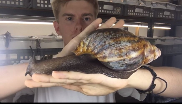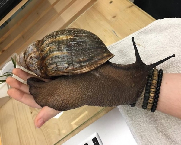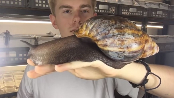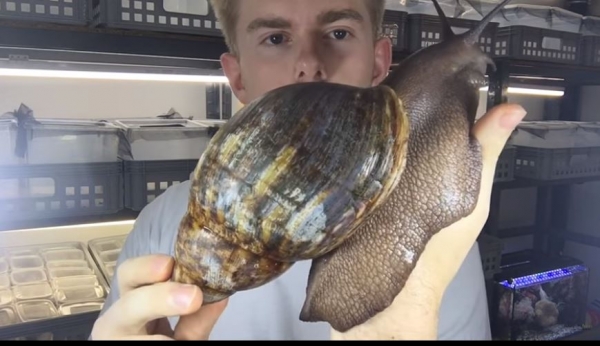 近日Adrian分享自己所養的「巨型蝸牛」,蝸牛簡直比Adrian的手掌還大!