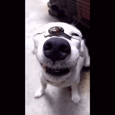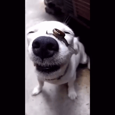 越看越覺得這隻狗一臉享受,可憐的小蝸牛怕是很難回到地面了。