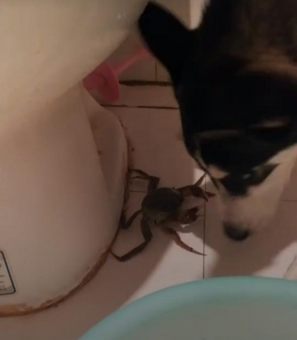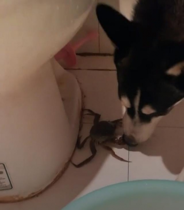 有位網友家裡養了只二哈,這天買了幾隻螃蟹回家,本來是要直接拿去煮的,可二哈偏要在螃蟹面前展示自己的威風 二哈雙眼直勾勾地看著螃蟹,好像在宣誓主權 二哈:我來嚐嚐這貨味道怎麼樣 沒想到剛一張嘴,悲劇了。。。 螃蟹鋒利的鉗子直接鉗住了二哈的舌頭哈哈哈哈哈 痛到模糊。。。 看來大傻子這稱號是名副其實的了。 (26)