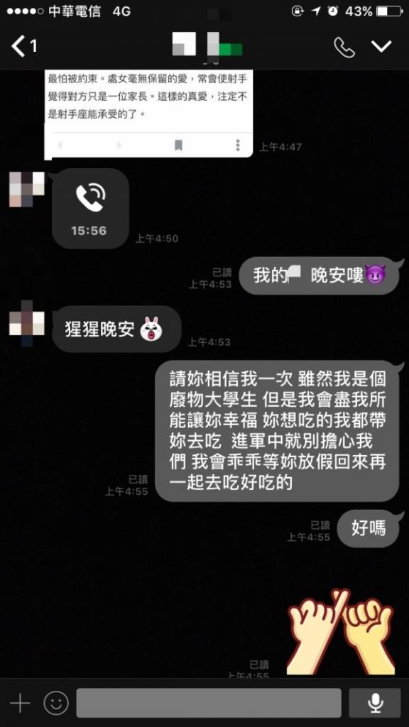 這個女孩因為簽志愿役,年底要入伍剃頭,他直接用「學長」梗告白說他不管長怎樣都很喜歡,沒想到女生直接丟一篇星座文「射手座易容易錯過處女座」表達愛意,網友看到後都感受到滿滿的幸福阿!表示:「終於修正果啦」、「從此dcard上就流傳了,一種學長告白法」、「太扯了」、「希望未來我也能跟你一樣好運」。