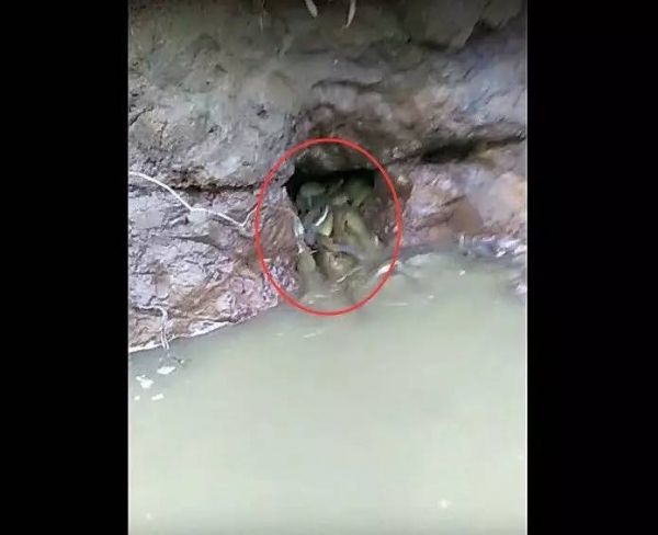 男子釣魚時看到河邊石洞有動靜