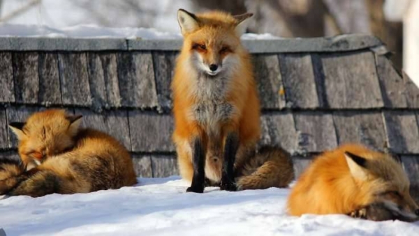 原來這些「不速之客」是幾隻毛茸茸的狐狸。