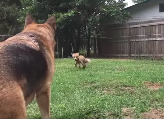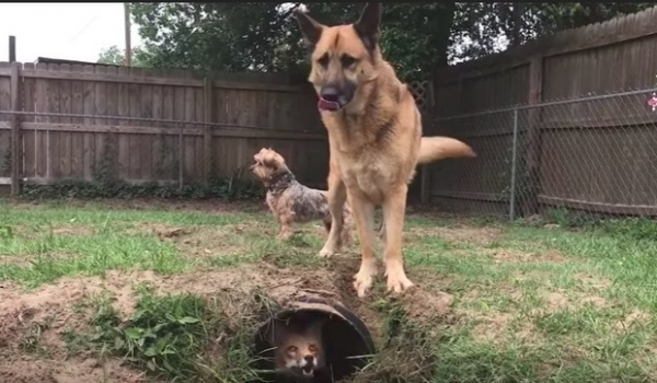 根據youtube的報導,狐狸跟狗狗養在一起還玩捉迷藏這應該不太常見吧!這個主人養了兩隻狗跟一隻狐狸,牠們有一天一起玩捉迷藏,德國牧羊犬想要抓到狐狸Riot,但是卻一直被狐狸耍著玩XD,讓網友直呼可愛!我們趕緊來看看吧! 這次一定要抓到你!臭狐狸! 咦?!跑哪去咧? 嘿嘿我在這裡~笨狗 在那邊嗎?!?! 另外一邊啦哈哈~! 你怎麼就是抓不到我咧~ 可惡給我過來!汪汪汪汪!!(怒) 你應該天黑了還抓不到我吧~~~ (37)