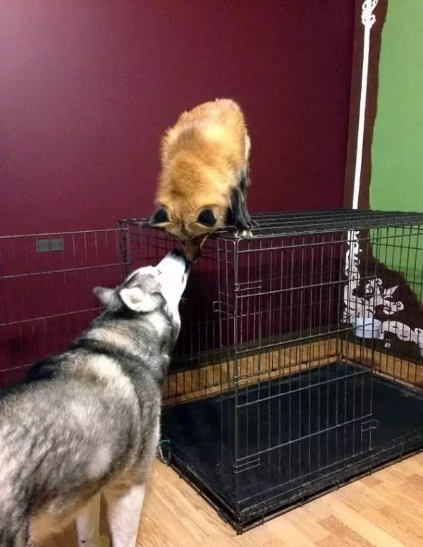 由於一直以來,都是哈士奇帶著小狐狸,因此小狐狸長大後,表現也變得跟牠有點像,比如看到主人來了就會主動翻過肚子要摸摸,還會坐下和握手喔!