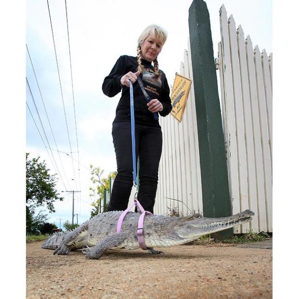 這個奶奶的寵物就是鱷魚,真的是心大,膽子更大。