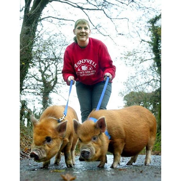 好吧,美女竟然把兩頭豬當做寵物,這樣的遛街方式讓我們措手不及。