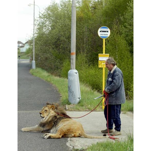 這個老爺爺厲害了,牽著獅子遛彎,還有比這更威風的嗎?