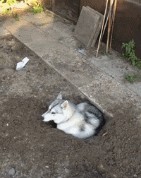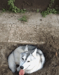 2.一隻哈士奇突然在家裡庭院挖出一個坑,就這樣躺進去坑裡。讓主人超傻眼!完全不明所以啊!XD 所以說挖這個坑到底是要幹嘛的?XD