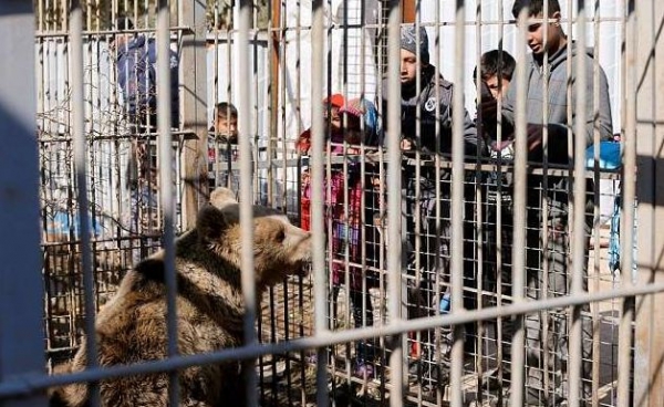 ▼這間動物園已經無人管理,庫爾德斯坦動物保護組織(Kurdistan Organisation for Animal Rights)的志工帶著食物前來,給牠們餵食。