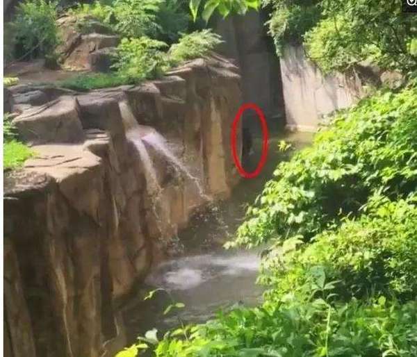 在參觀猩猩的時候,孩子不慎失足從假山滑進了“猩猩樂園”裡面有一隻站立時身高1米5的強壯猩猩,在這位鋼鐵巨漢旁邊的孩子嚇得不輕,不過讓人們沒想到的是猩猩竟然扶起了孩子,還用手將孩子衣服上的水擰乾。