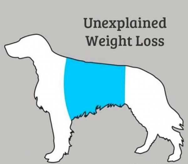 當狗狗突然變瘦的時候,千萬要注意!這可能是代表狗狗的新陳代謝、肌肉或是心臟有問題,甚至可能是因為癌症,這些原因都會讓狗狗的食慾變差,導致體重突然變輕,如果你發現狗狗的體重掉了約10 %的話,你最好馬上帶狗狗去看醫生!