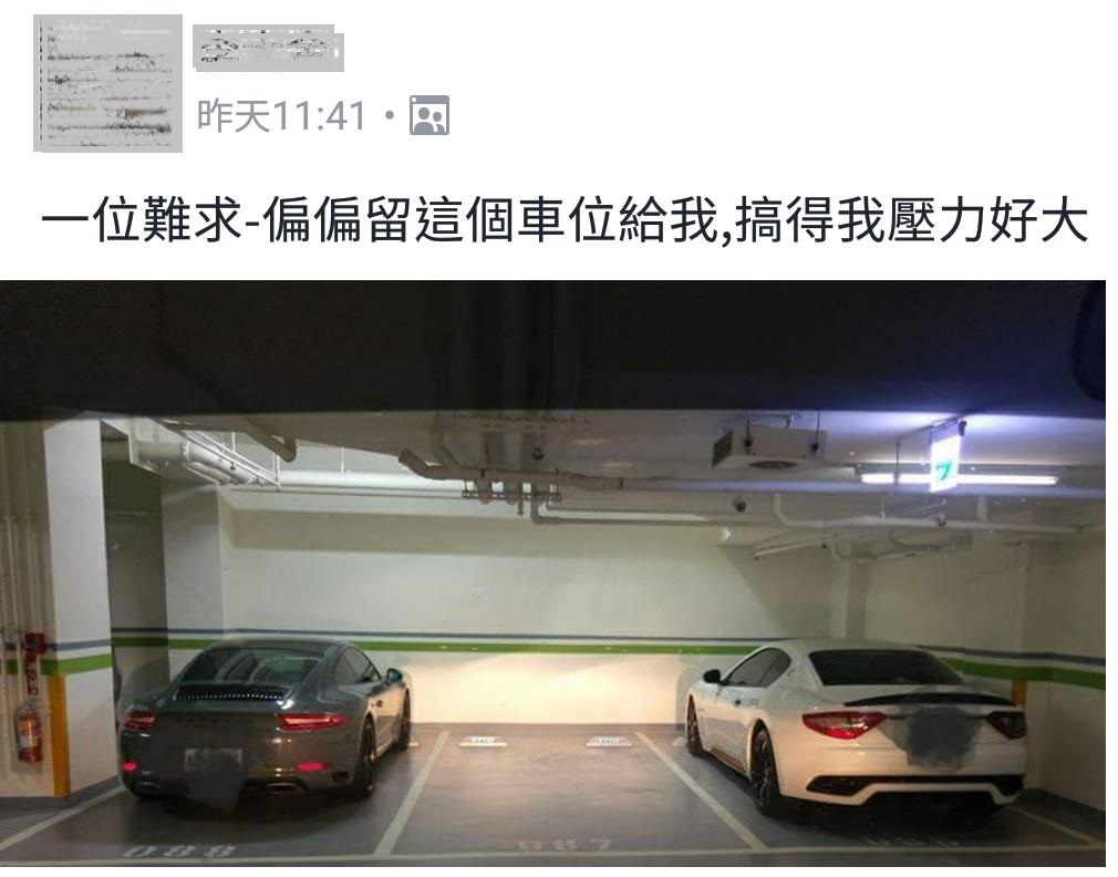 有網友在臉書社團中發文「一位難求-偏偏留這個車位給我,搞得我壓力好大」雖然這好像是外面的車位,而不是自己家裡面的感覺,但如果是在外面找車位突然看到這位子你會敢停嗎?還是就默默的開走?沒想到這篇文章才剛po出卻引起許許多網友的回應,尤其是看到原po的車,才覺得是神車啊!旁邊兩台跑車根本不夠看啊!