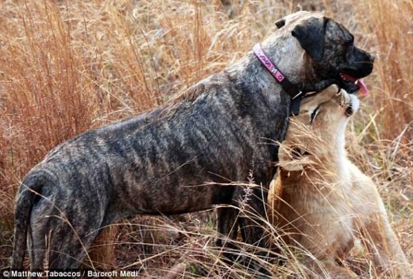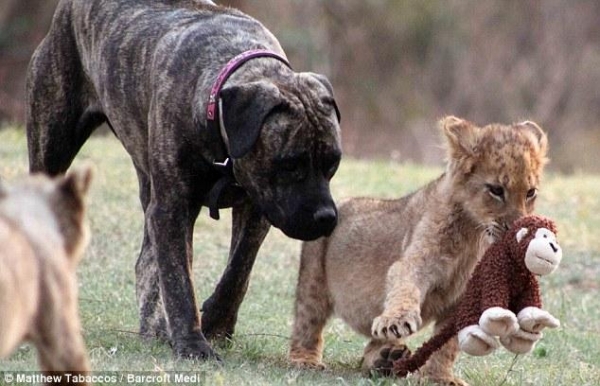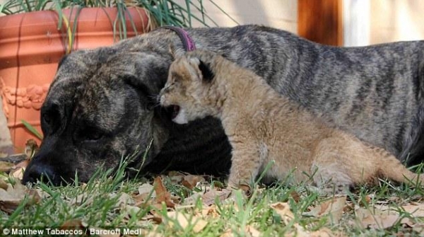 這只叫Beth的馬士提夫獒犬是只非常具有母性的狗狗,它在南非的一家獅子保護所內,專門負責照顧孤兒小獅子或被親生母親拋棄不管的小獅子。