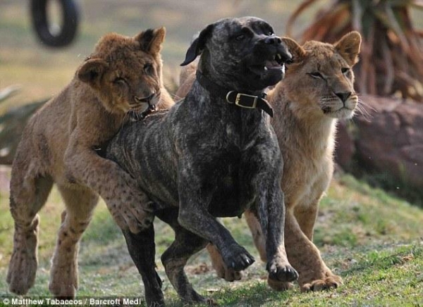 而且它也不是一味的溺愛獅崽,當這些小獅子太頑皮的時候,它也會適當的教訓它們,反正這條狗狗的表示基本上和一條母獅一樣,所以人們最終決定就由它來專職當小獅子的媽媽。