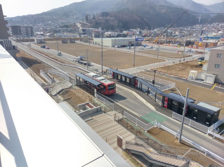 當地的JR鐵道在當初也被海嘯給沖毀殆盡,所以JR東日本公司把這條路線改成BRT,把剩餘的鐵道全部拆除鋪成馬路,在路口也會有小平交道,車輛則使用油電半的低底盤公車。還會把專用道給擋起來,以免行人行車誤入。