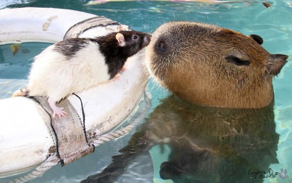 網上多數照片都可以證明很多動物似乎都喜歡跟「友善」的生物一起相處,尤其像是豬鼠類別的動物甚至連鱷魚都包含其中。