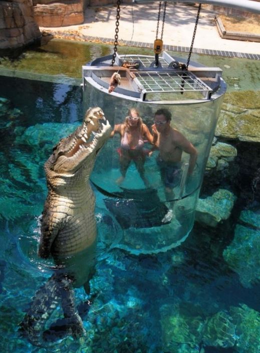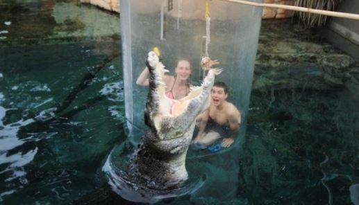 但是,澳洲達爾文市的一個旅遊勝地偏偏推出了一項叫做「死亡之籠」的驚險體驗項目。