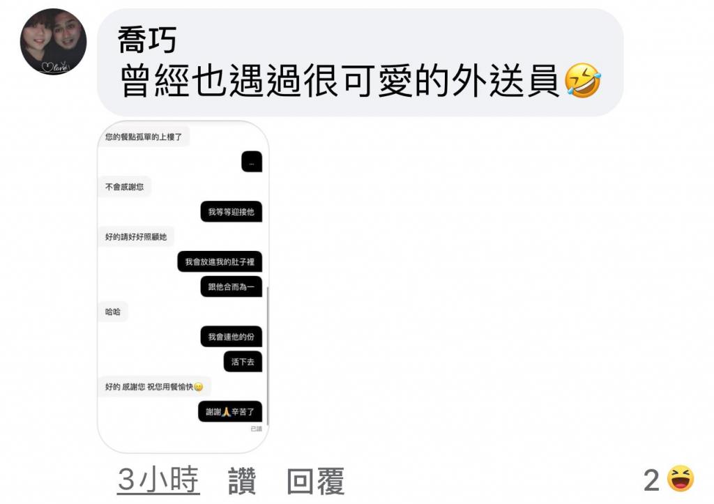 「太好笑了…為什麼我都遇不到那麼好笑的外送員。」