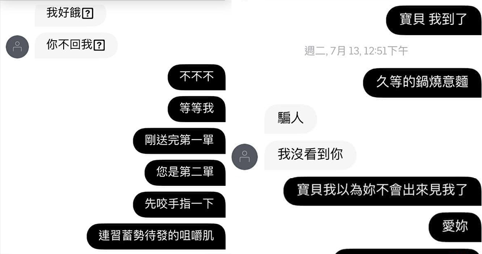 外送遲到被妹子密「我好餓你在哪」竟發展出浪漫愛情戲!網笑翻:兩個人都超會撩啦