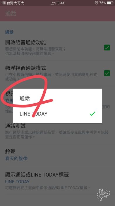 最下面有「顯示通話或LINE TODAT標籤」,選擇「通話」;
