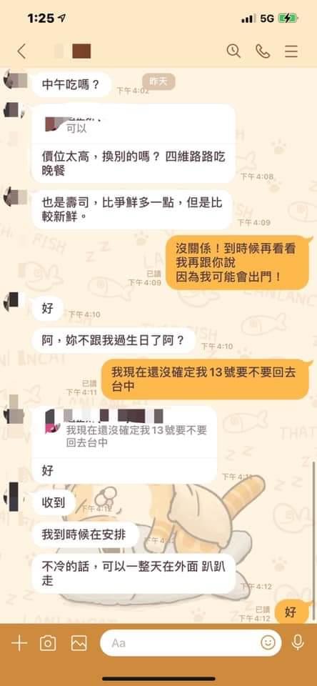 「沒關係!到時候再看看,我再跟你說,因為我可能會出門…」。