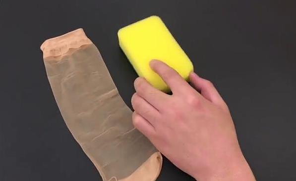 第一步:首先準備一塊乾淨的百潔布和一條絲襪,用穿過的舊絲襪廢物利用也是可以的。