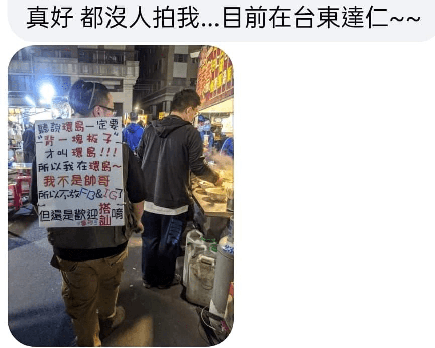 「現在環島掛牌子是標配嗎XD」