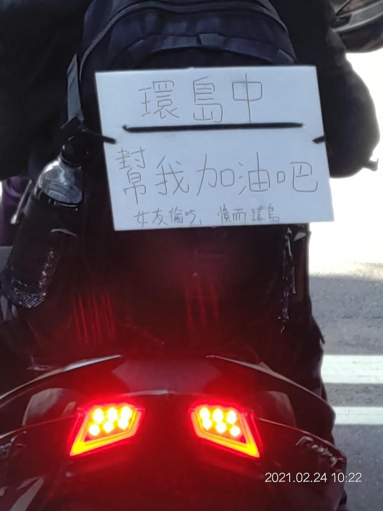 看到一位機車騎士正在環島,理由卻相當正向XD 希望騎士如果在旅途中,也能收到更多人的鼓勵。