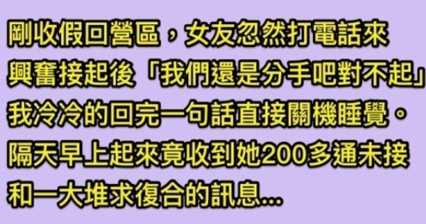 隔天早上起來竟收到她200多通未接和一大堆求復合的訊息…