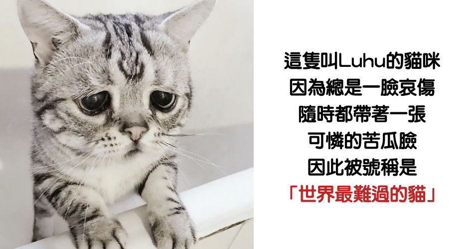 但是卻有隻叫Luhu的貓咪,卻總是一臉憂愁跟難過,不管什麼時候總是有一張可憐的苦瓜臉,甚至因此被號稱是「世界最難過的貓」,就讓小編帶大家一起來看看他有多難過吧QQ