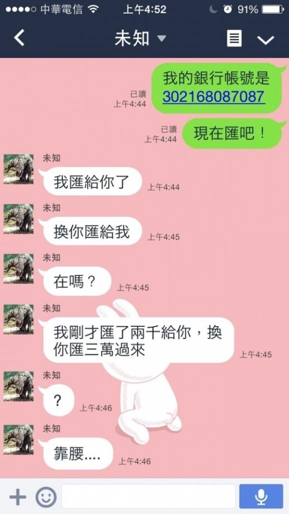 「但我戶頭只有2萬8千元,還差2000元就三萬,還是你匯個2000給我,我在把三萬直接匯給你?」,還超逼真的給了詐.騙集團戶頭,詐.騙集團一聽以為網友上當,立刻說現在就去匯,網友也發現戶頭真的多了2000元,當場笑到翻掉,沒想到竟然能真的騙到詐.騙集團的錢!