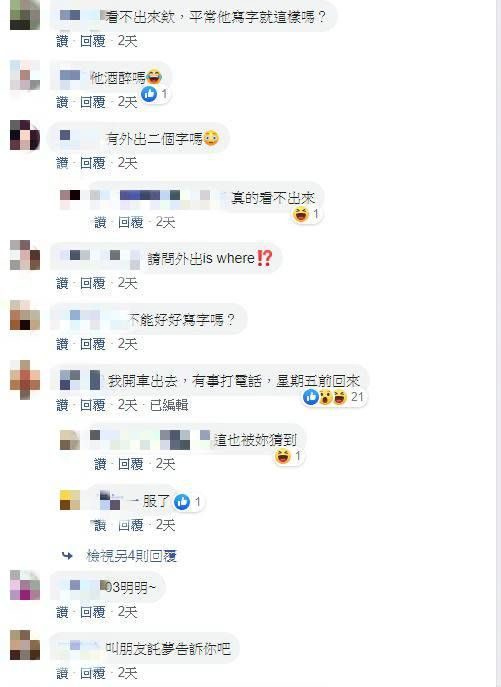 網友紛紛笑說:「我連外出都沒看到啊!」、「抱歉,我連外出都看不出來!」、「是怕人家知道寫什麼嗎?」、「拿外星文要地球人翻譯捏!」