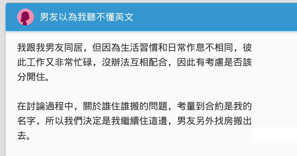 男友以為我聽不懂英文