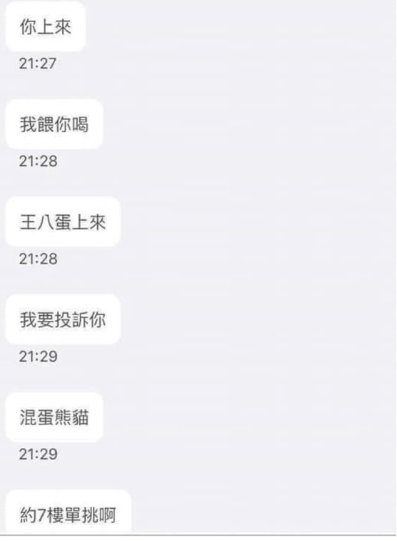 顧客一看到被嗆就開始連環攻擊「你上來,我餵你喝,王八蛋上來,我要投訴你,混蛋熊貓」