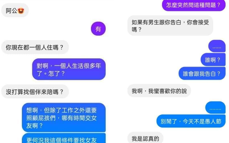 朋友私訊詢問感情狀況,突然進而告白,無奈他的身分讓他完全高興不起來