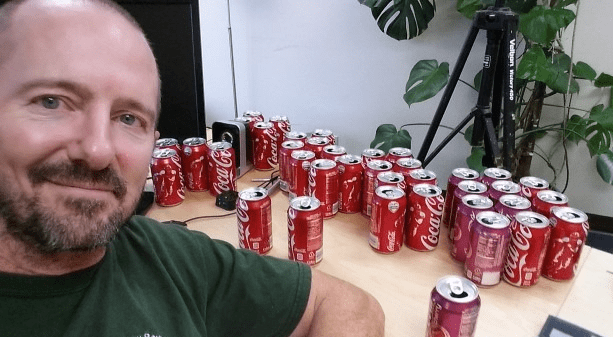 這位美國大叔名叫George Prior,今年已經50歲了。他在開始實驗後,在每天的飲食裡面加入了10罐可樂,其他的飲食、生活習慣都不變,並且紀錄下每天的體重、體脂肪率、血壓……等等數據。