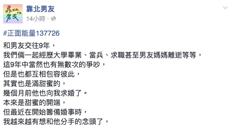 一名女網友在靠北男友PO出男友對於籌備婚事的想法與她沒有共識,