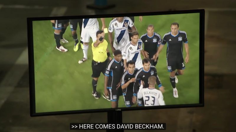 在主席名面,大家在揭開銅像前先看看貝克漢在洛杉磯銀河的精彩畫面,當貝克漢期待著他的入球、罰球破網等時刻時,想不到電視正播著他罰球高出,甚至被罰紅牌的畫面呢,看得他也尷尬地問一句:「這是紅牌那時?」