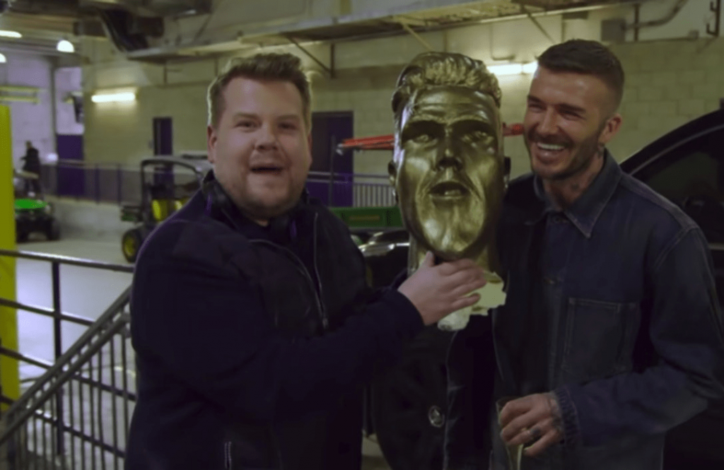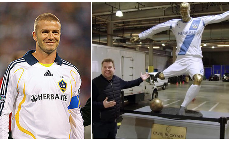 早前洛杉磯銀河為了答謝球星貝克漢的貢獻,於球場放置了一個大的銅像,貝克漢當然十分高興,更帶同老婆子女出席開幕禮,但原來在開幕禮前貝克漢被James Corden整蠱,連績被整5次再看到自己不堪入目的銅像,貝克漢都差點崩潰了!