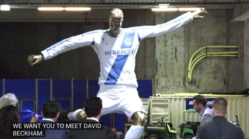 球星貝克漢開幕前慘被連續惡整5次,當山寨銅像一揭面秒崩潰:Amazing