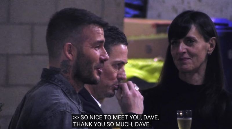 貝克漢英文名是David Beckham,同時他也十分討厭別人叫他Dave,這名演員當然要不停叫他Dave,貝克漢直接出聲指「我呀,媽才可以叫我Dave。」「是嗎?對不起,Dave。」