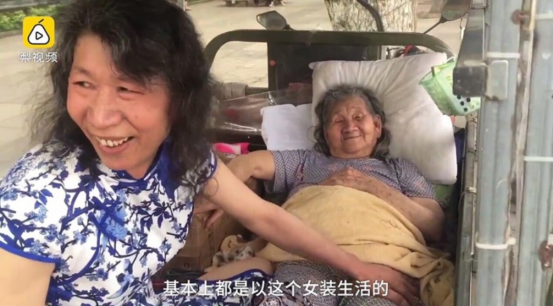 河南網訊:2017年7月15日報導,廣西桂林,一位五十多歲大叔,常年照顧母親起居,穿旗袍帶母親逛街。男子稱,多年前妹妹因病去世,母親過度思念傷心,精神出了問題。一次偶然機會,他穿上女裝扮作妹妹,母親突然變開心了,為此他堅持穿了二十年。男子稱:“我為了老人家,怕別人笑什麼呢?”看到兒子穿成女裝的樣子,母親以為女兒回來了。