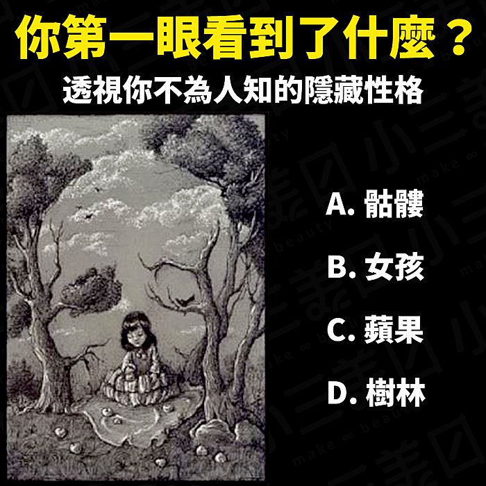 一個人的直覺能表現出這個人潛在的性格,因此有許多心理學家會藉由圖像測驗去了解一個人真正的內在,這次我們要來玩的這個心理測驗就是要來透視你不為人知的隱藏性格!上面的圖片中,你的直覺第一眼看到了什麼呢?