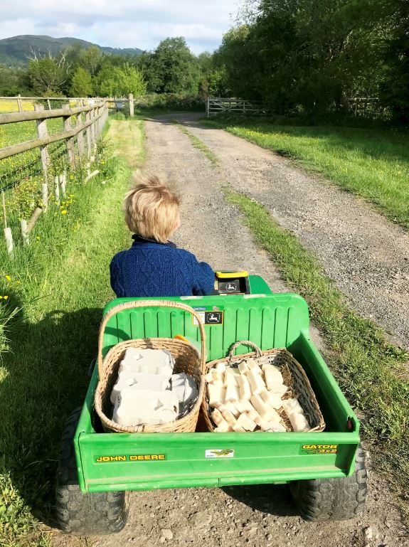 某天在學校看了一本有關開設小店的書之後,更是起而行地決定在自家開設一間「誠實商店」,以簡單的攤位幫忙販售農場生產的山羊奶、手工皂、以及雞蛋等,好讓有需要的客人自己拿取需要的商品和找零。