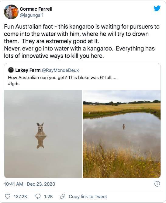 Coulson博士還說,他鄰居家的2隻狗狗就是在追逐袋鼠的過程中去了天堂的:「他家的鬥牛梗追進水裡就被 溺X 了。後來他又養了一隻鬥牛梗,也以同樣的方式對待了,所以他養了第三隻狗之後,都把牠鎖在家裡。」