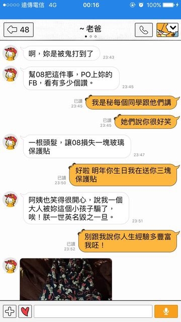 女網友覺得最近流行這張圖片很有趣,就將這張圖片傳給爸爸。