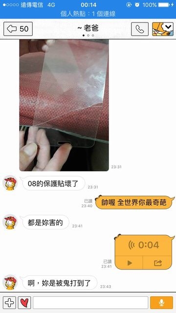 女網友的爸爸先撥了一下螢幕上的頭髮,沒反應之后以為是在保護貼里面,就想說撕起來看,結果裂 了大半邊。