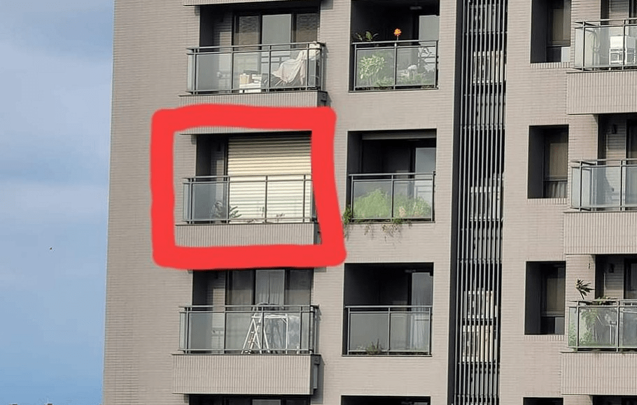 一名網友在臉書上表示,目前住新家三年,每次遠眺對面大樓時,發現某一戶的陽台區有安裝鐵捲門