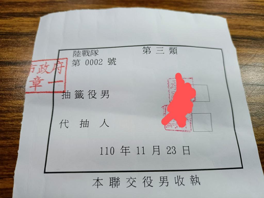 當兵是不少男人一生中「特別的回憶」!而在進入兵營前,大家最緊張的就是「抽籤時刻」,希望自己手氣好點,不要一抽就籤王…但這位網友的兒子,就沒這麼幸運了!