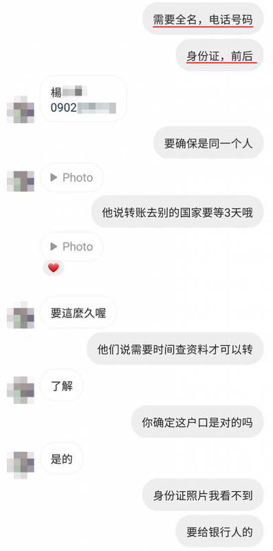 連身份證正反面都拍了(台灣身份證背面有寫父母名字、住址等個人資訊),真的看不懂誰才比較像詐騙了哈哈!
